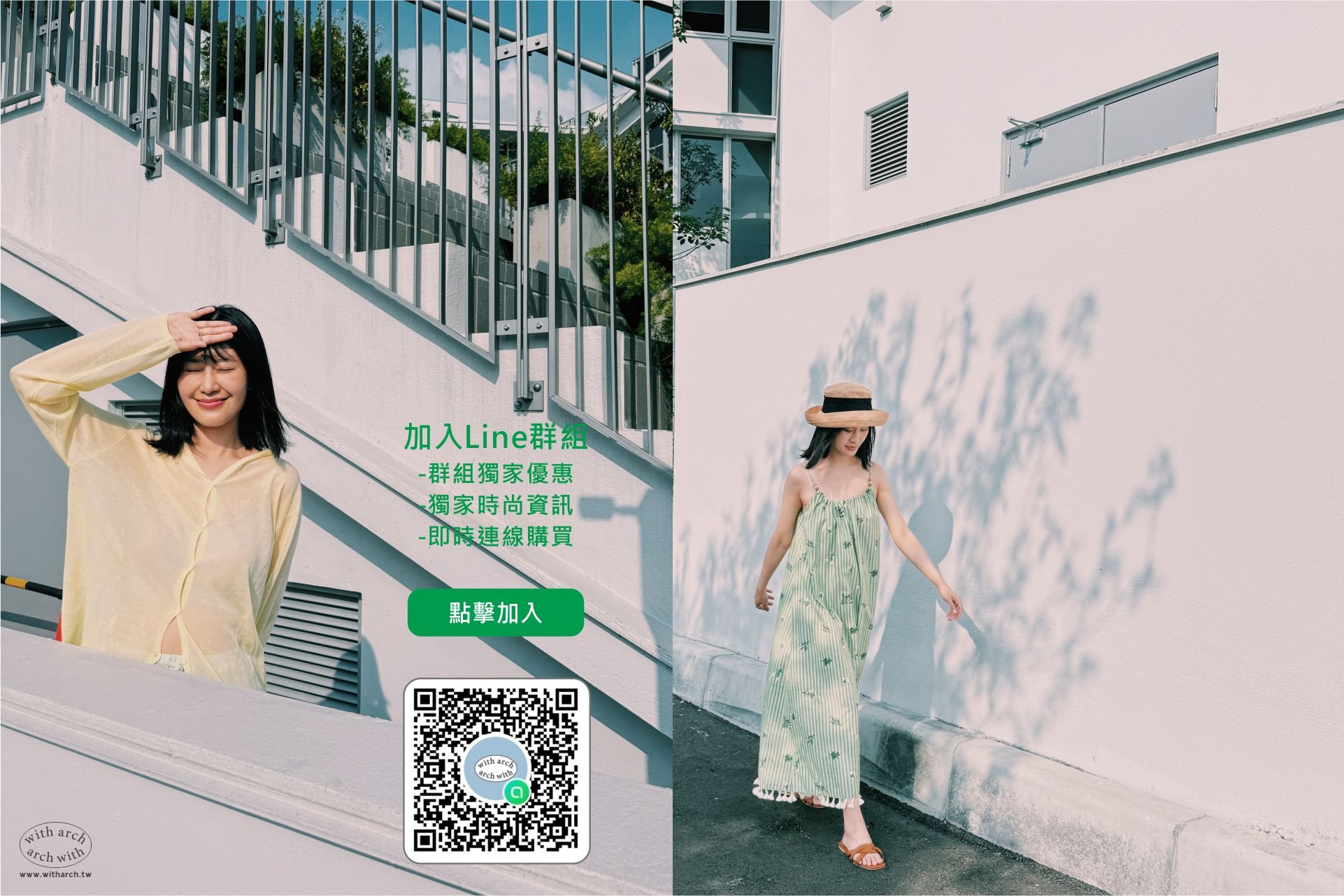 witharch-棉紗連袖上衣-綠