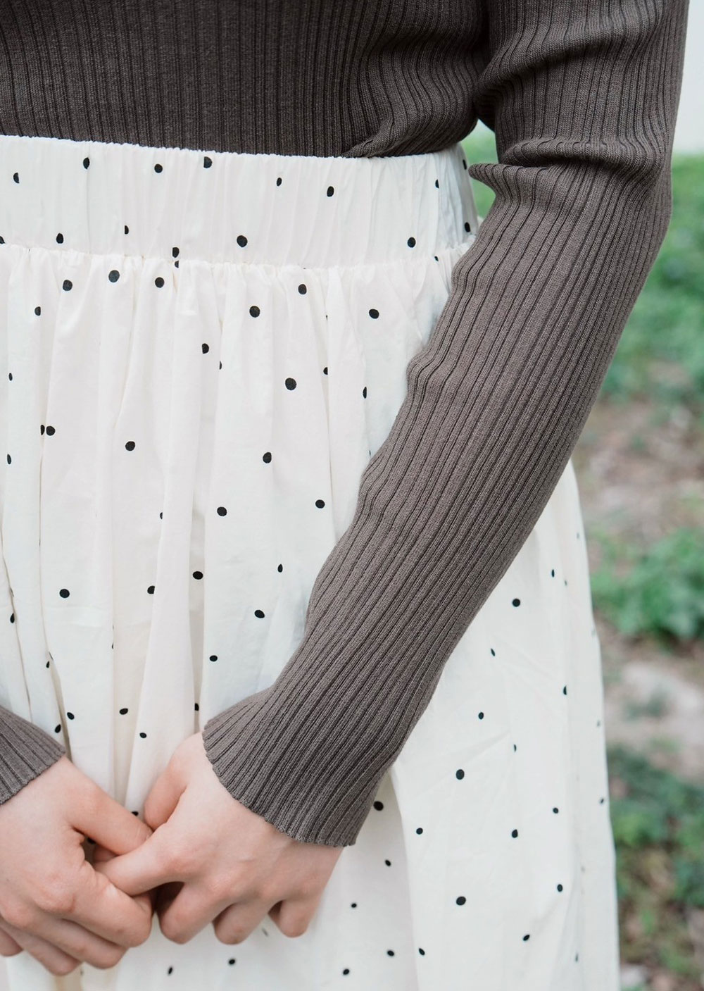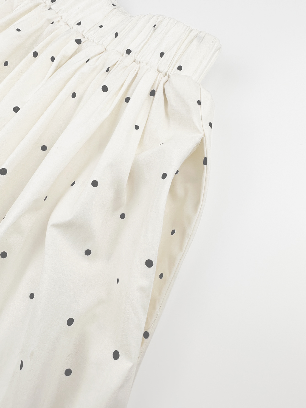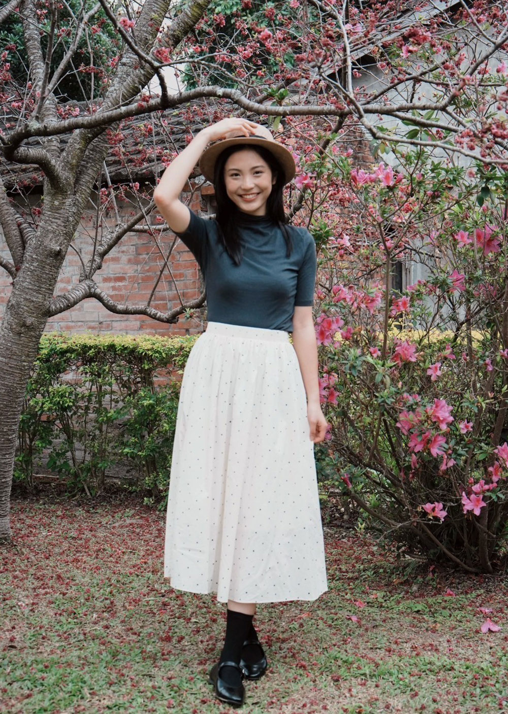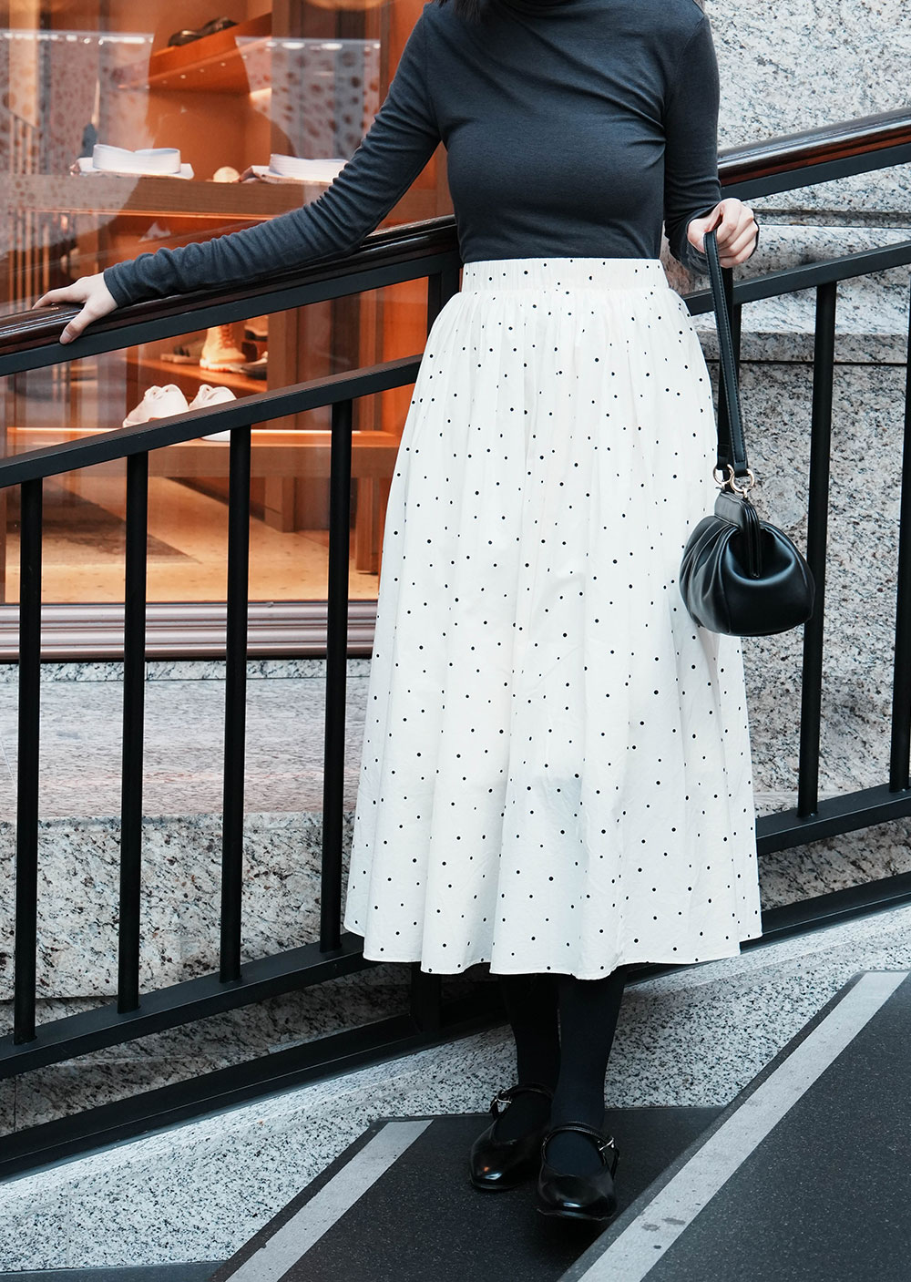 * 杏色底黑色小波點半截裙,只需簡單搭配就能出彩。