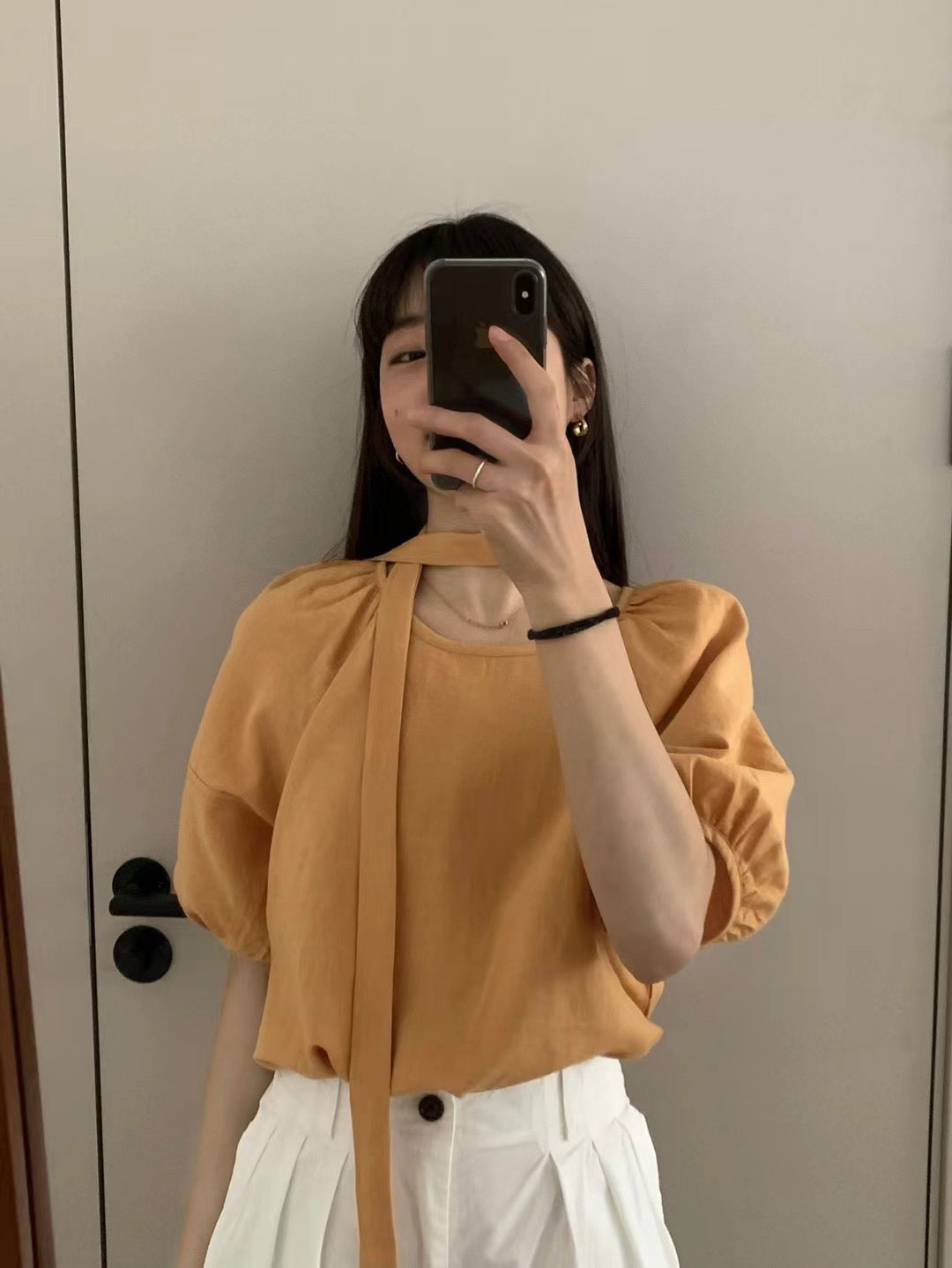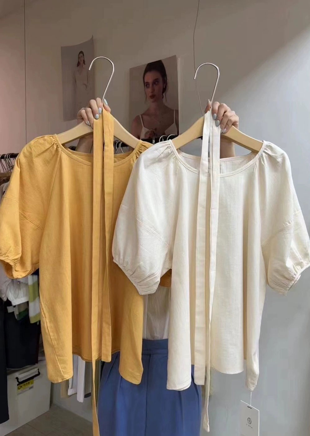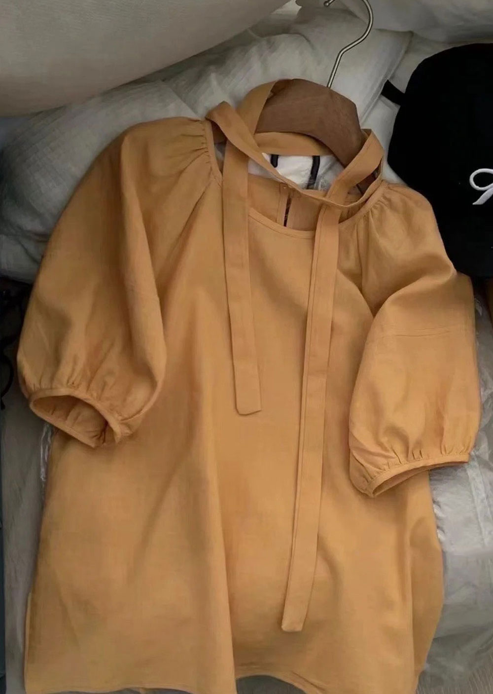棉麻苞袖綁帶襯衫