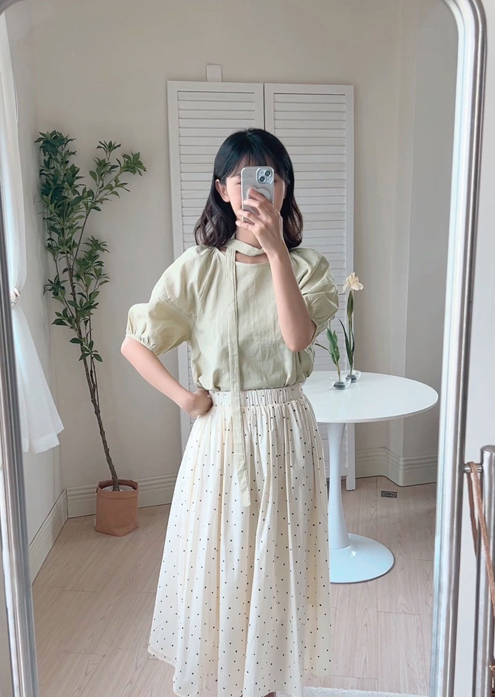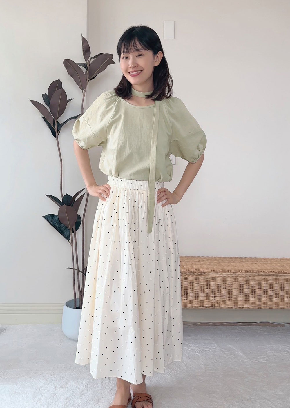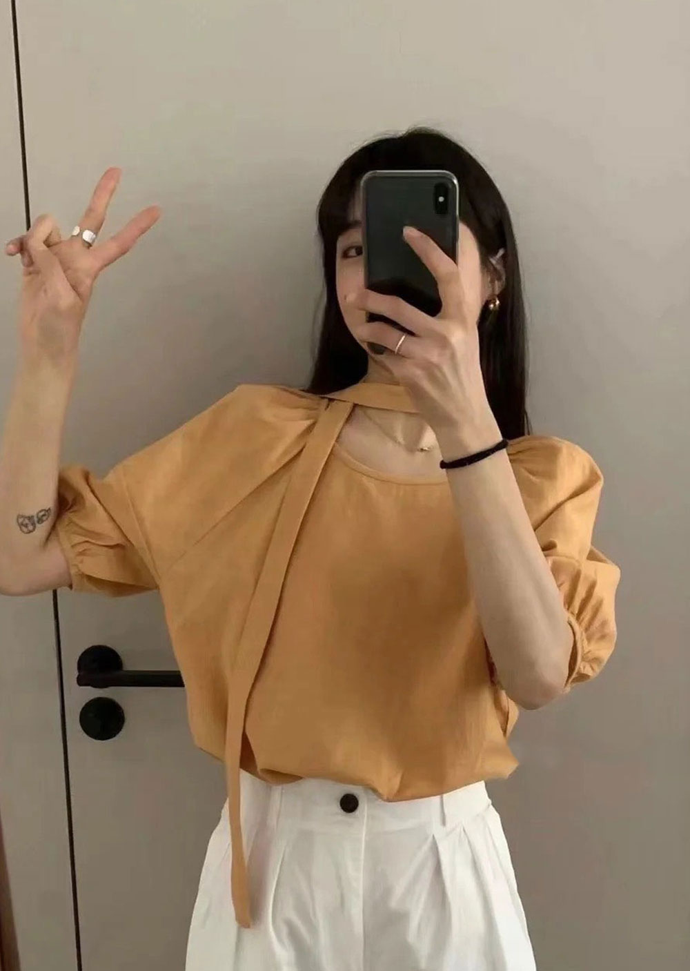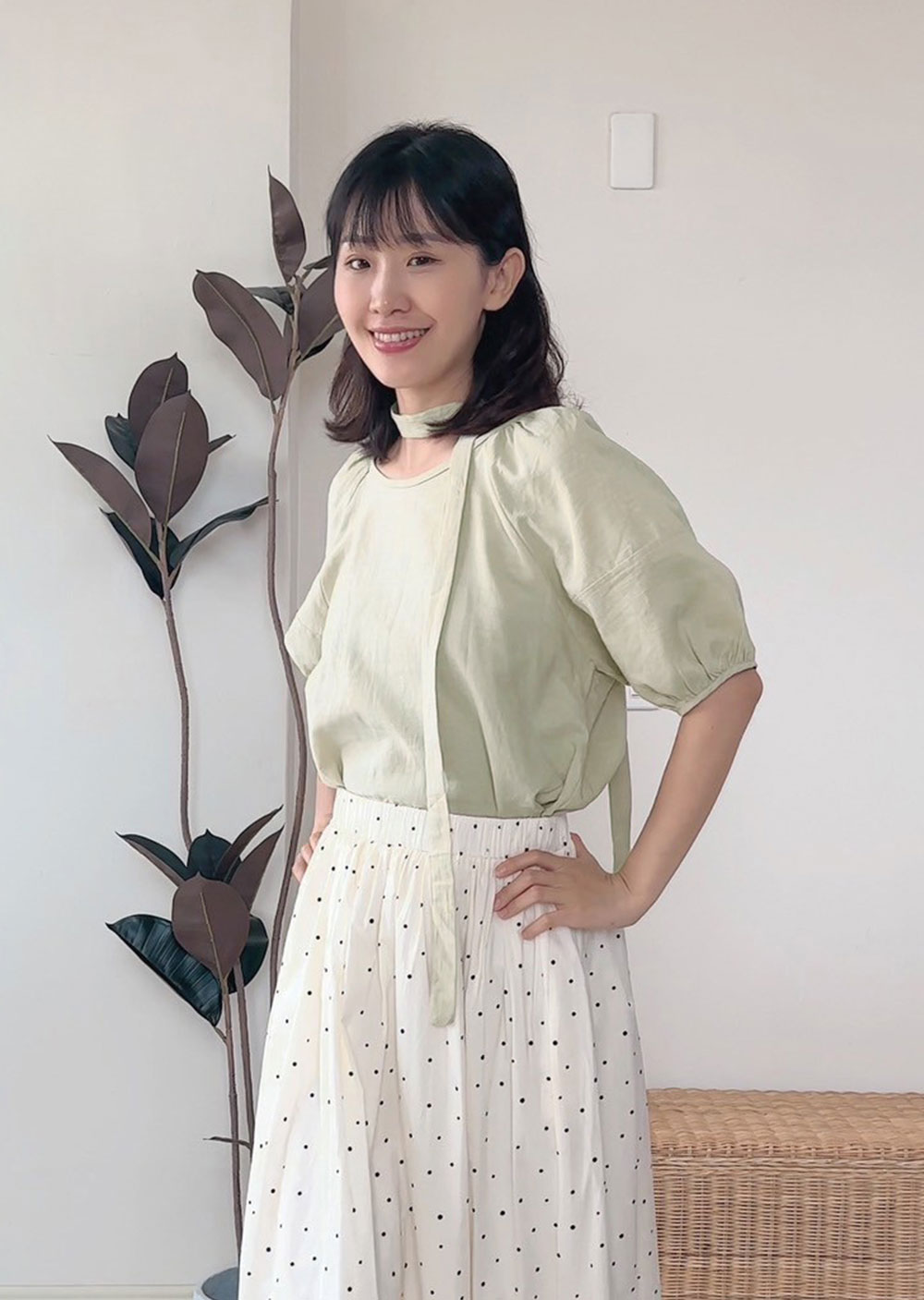 棉麻苞袖綁帶襯衫