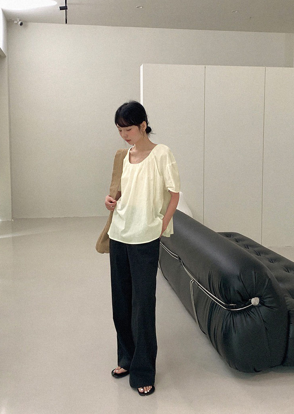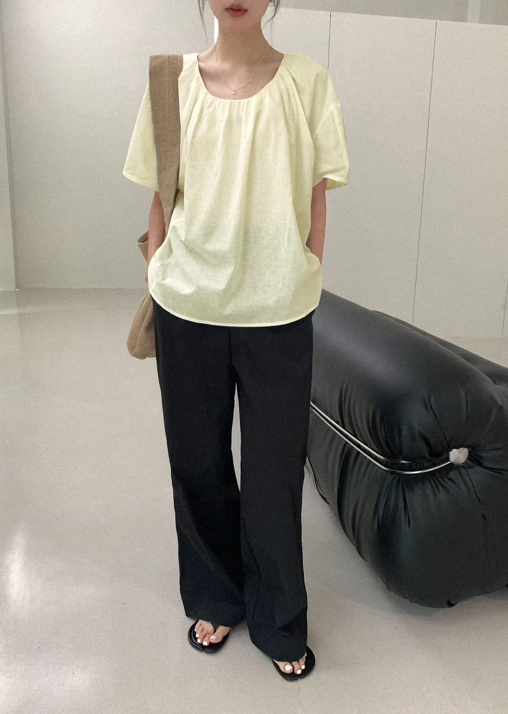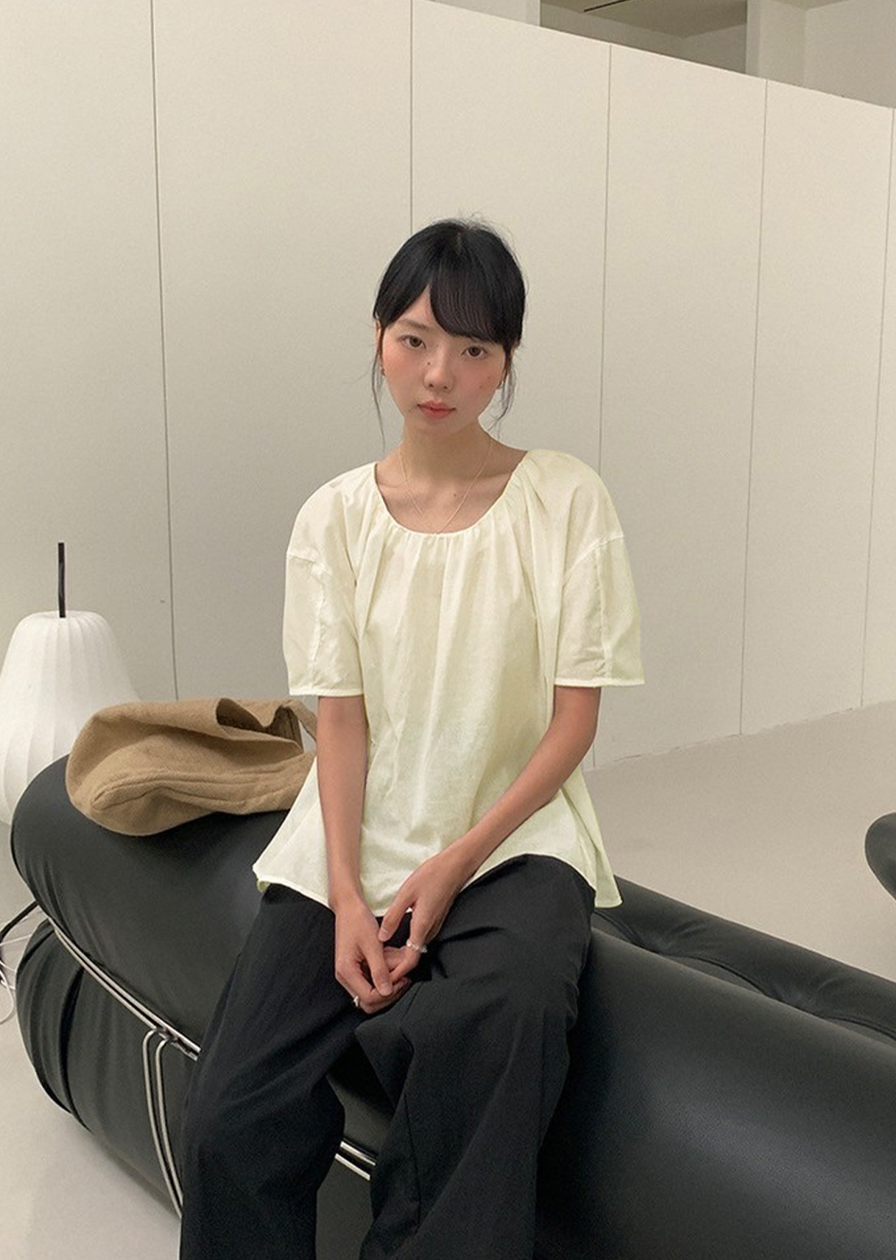 棉麻柔褶上衣
