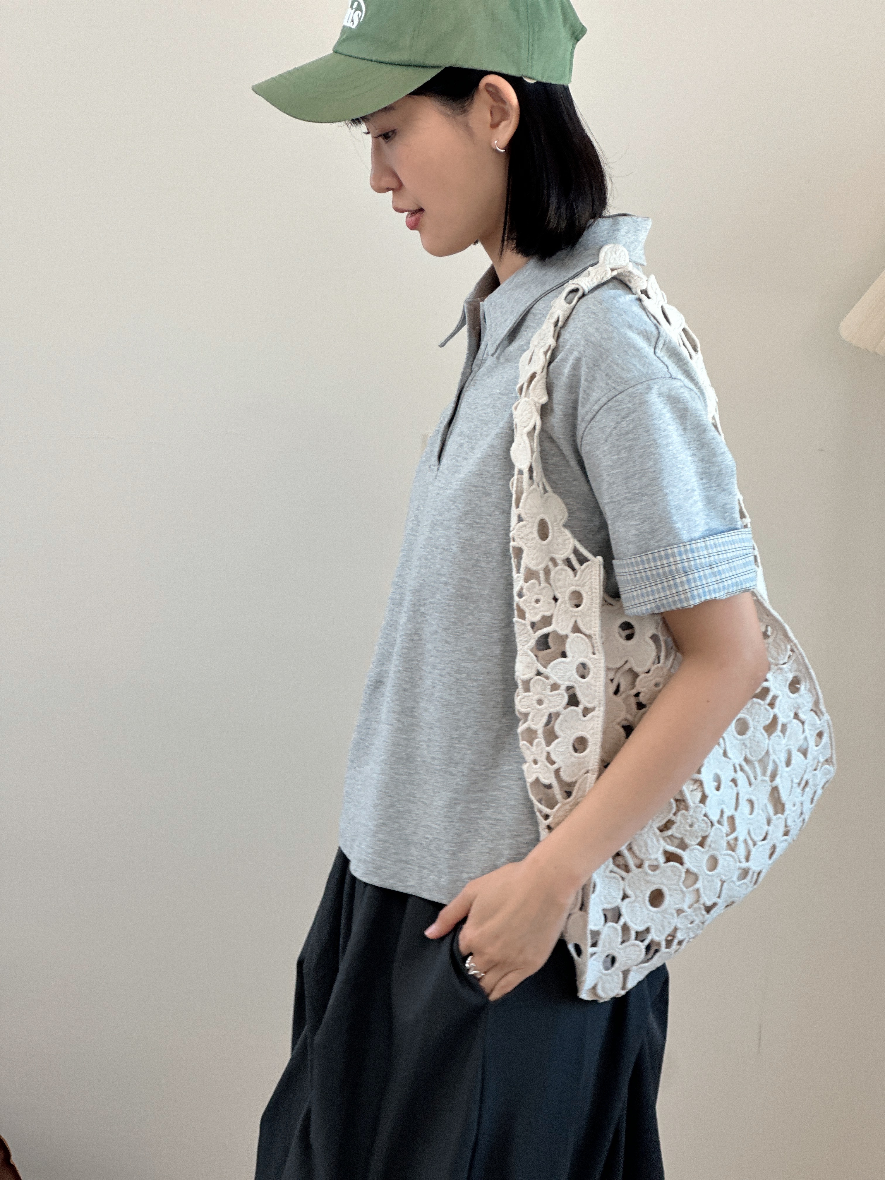 棉麻荷領口袋上衣