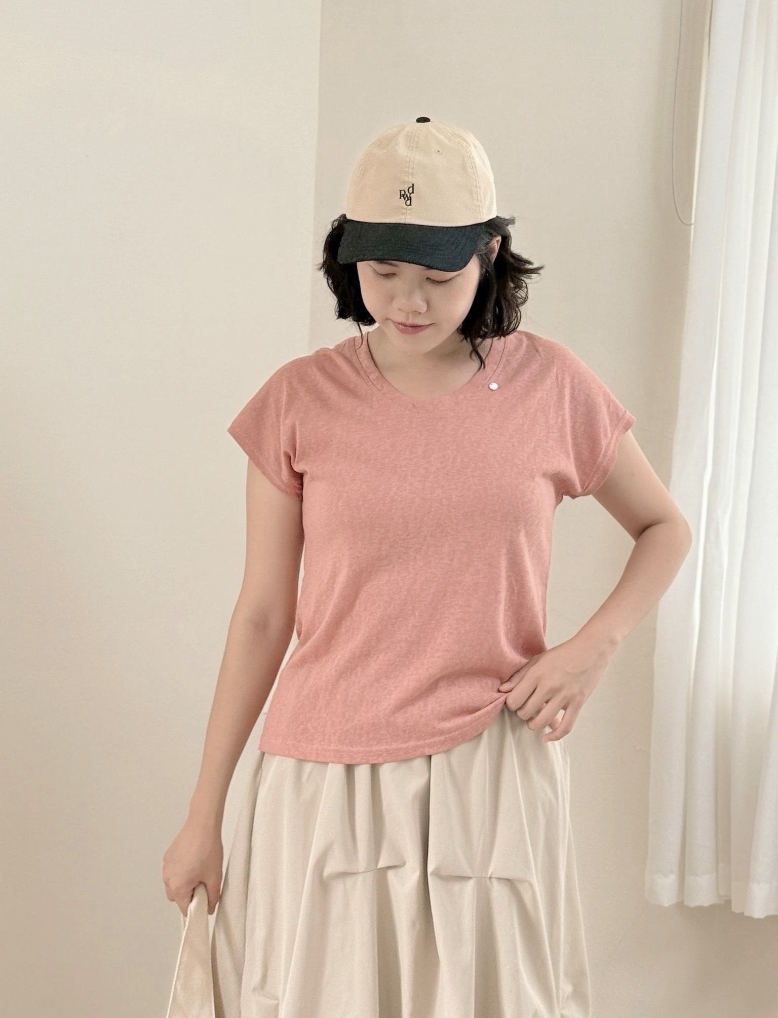 天絲亞麻U領Tee-粉