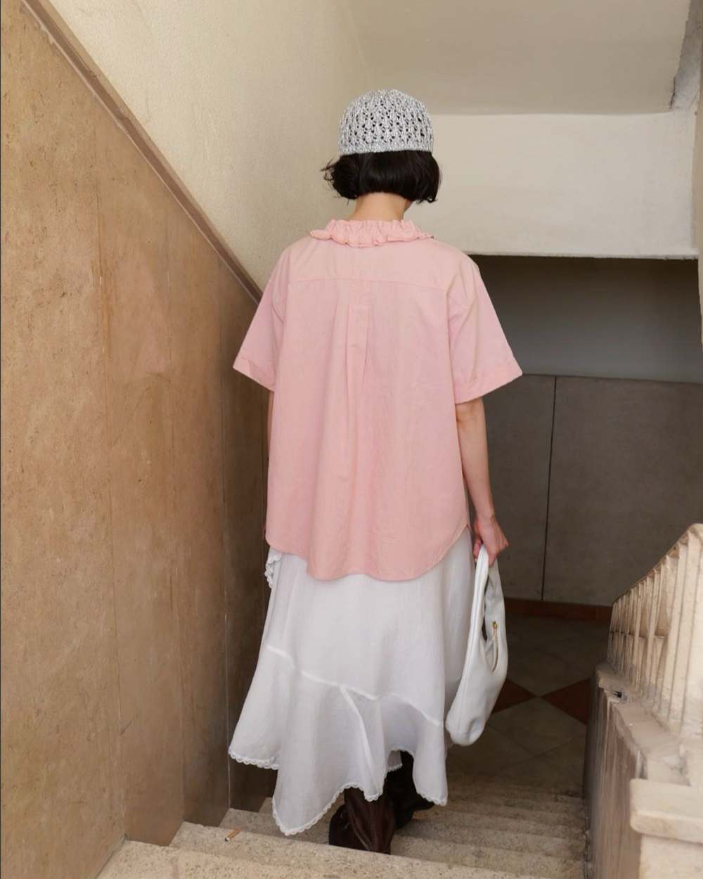 高質感口袋短袖襯衫-粉