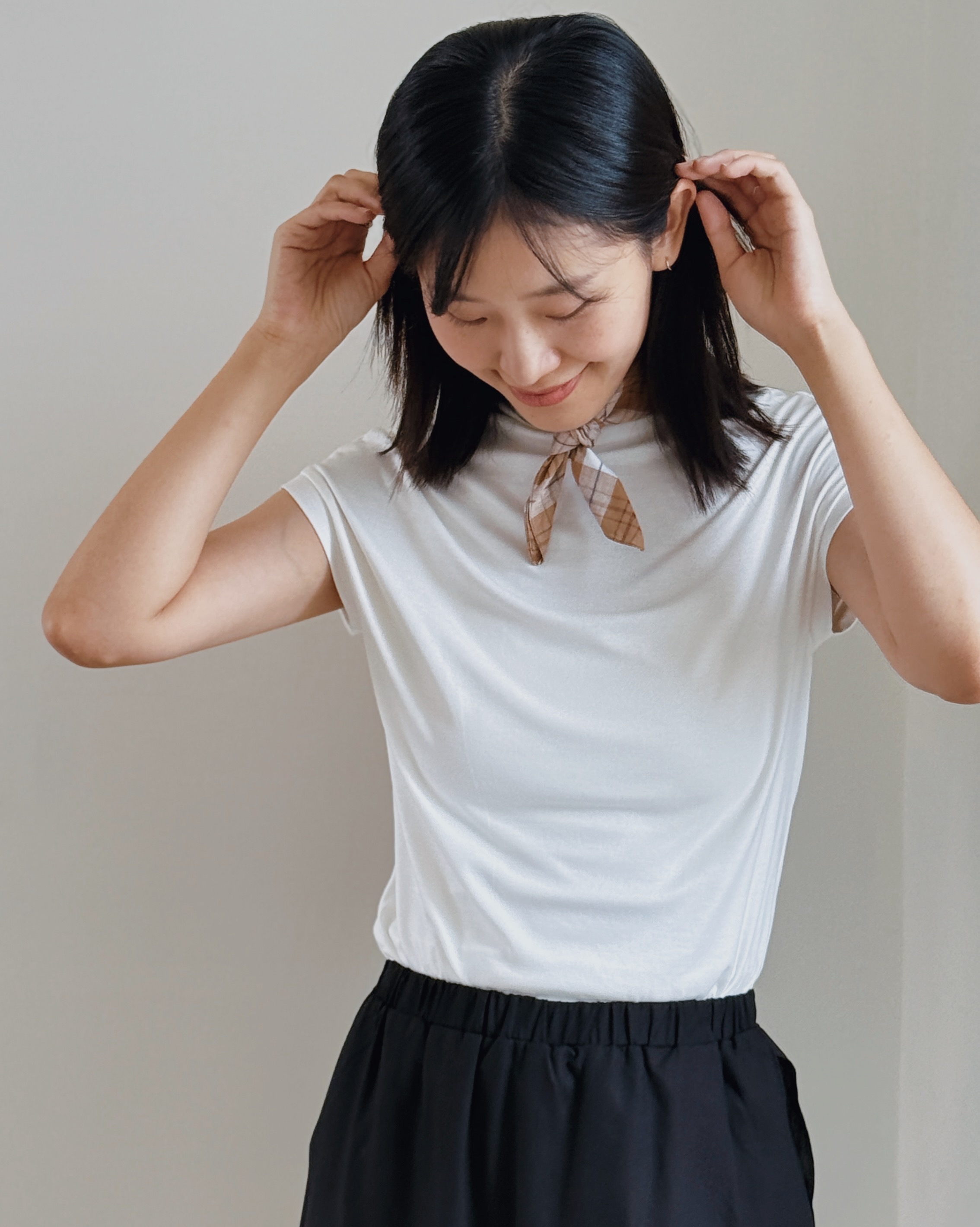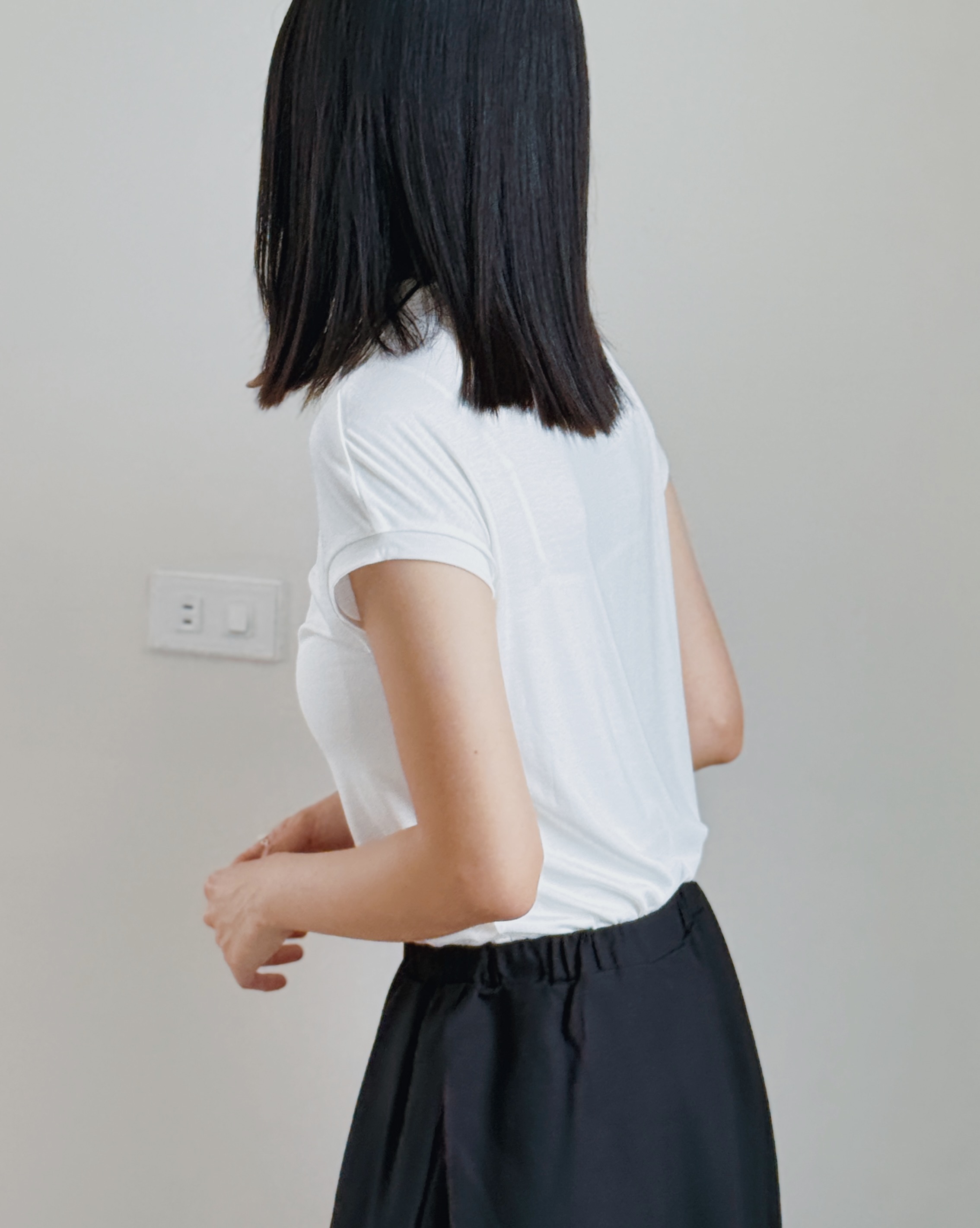小立領法式袖上衣-白