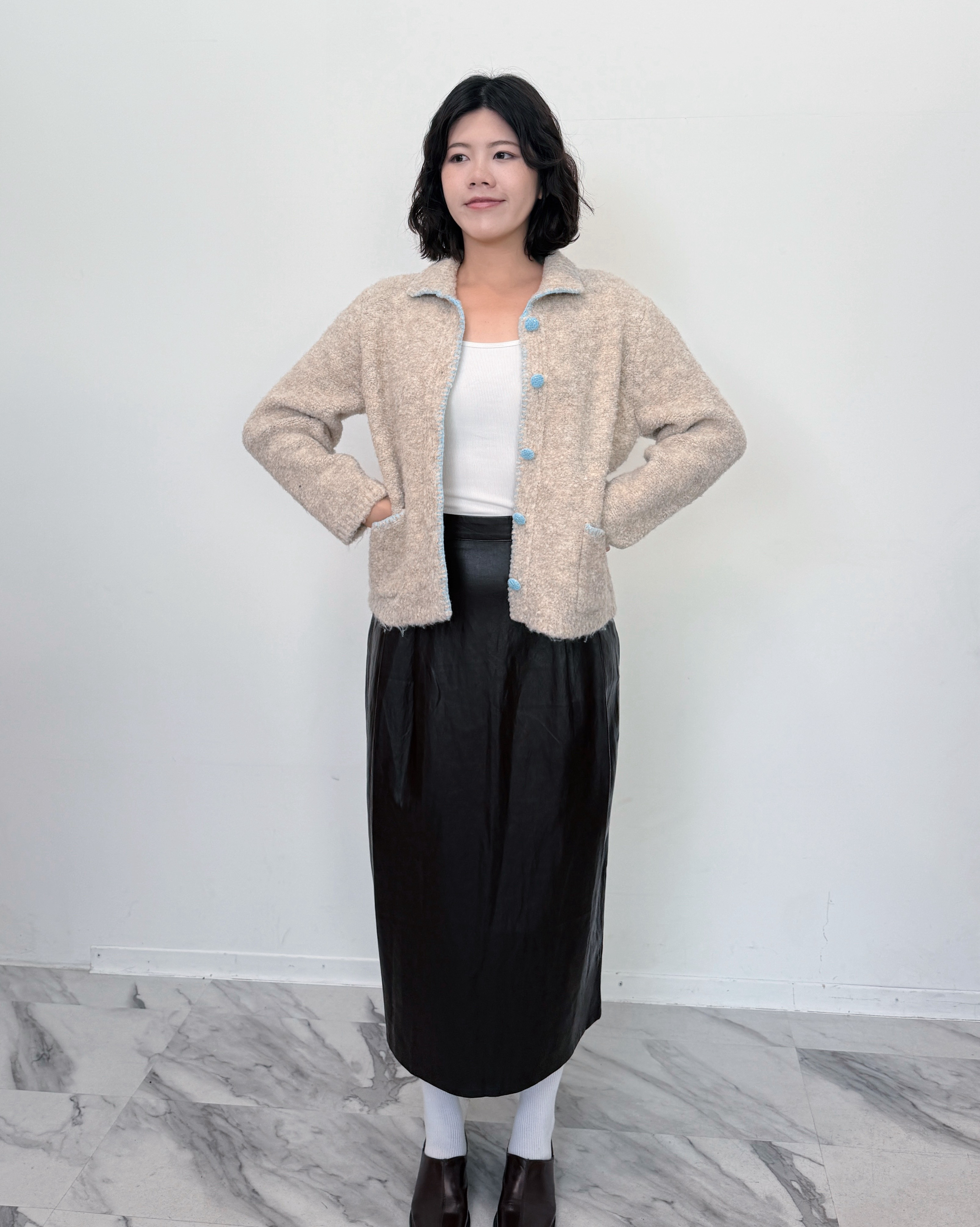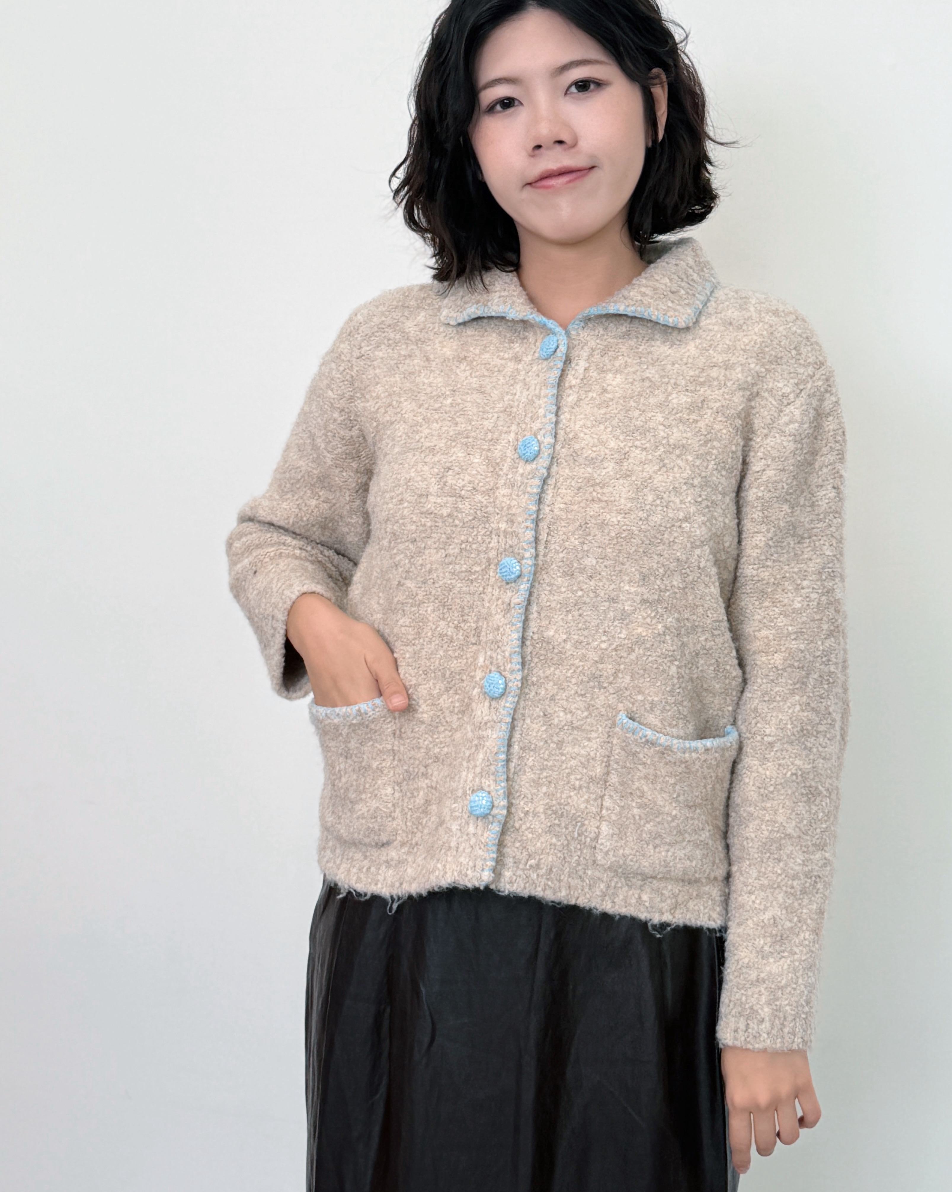 翻領圈圈開襟外套-卡其