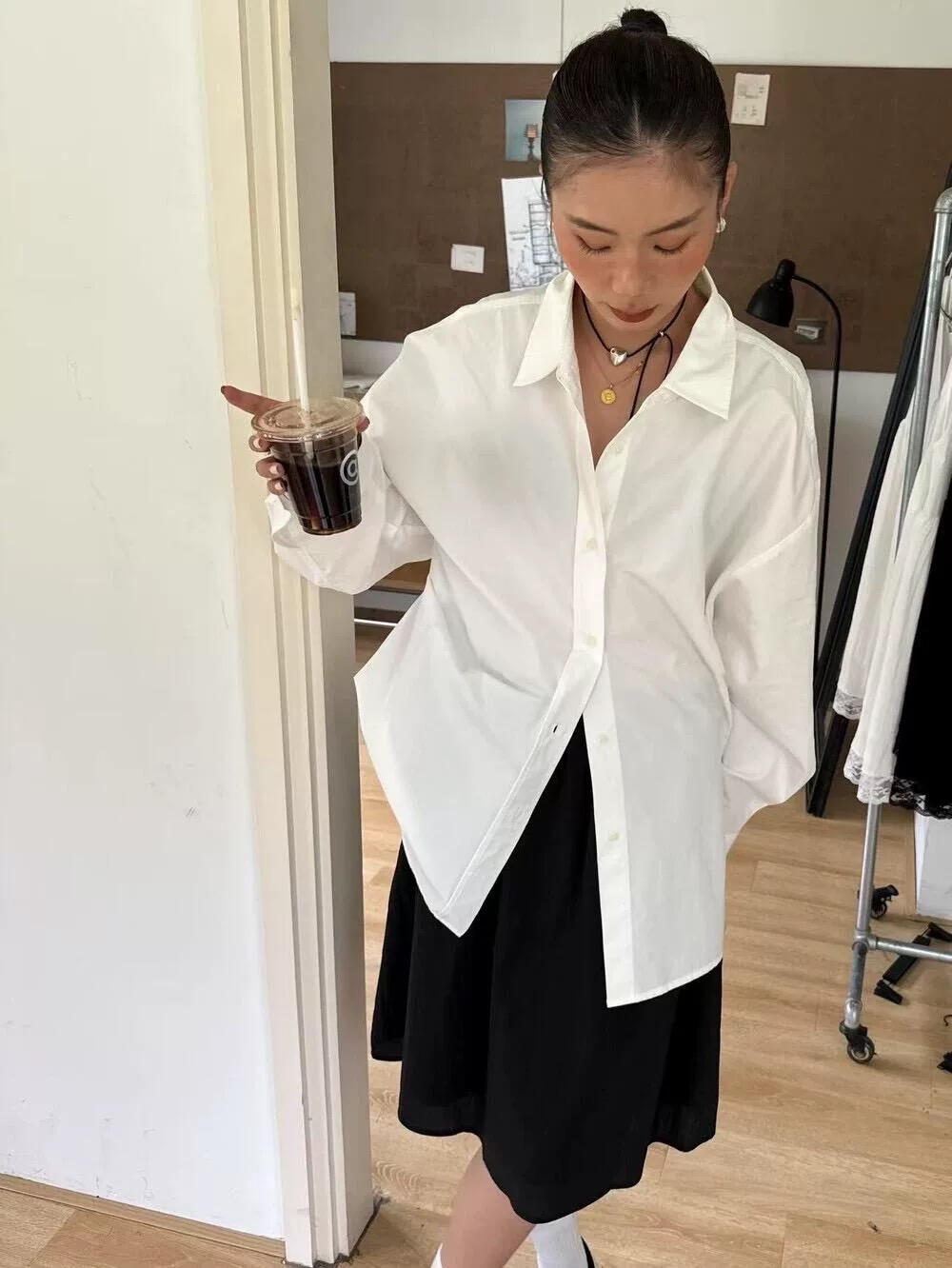 •垂直微褶皺布紋,免燙易整理,隨意搭配襯衫或 T-shirt 都能展現溫柔氣質