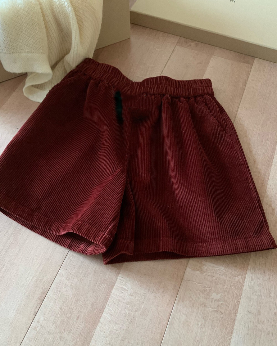 燈心絨萬能短褲-紅