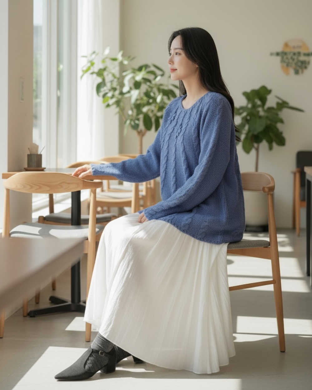 亞麻柔褶傘擺上衣