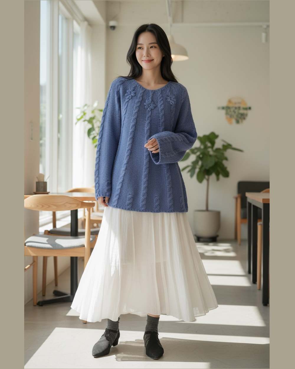 手工繡花麻花上衣-中藍
