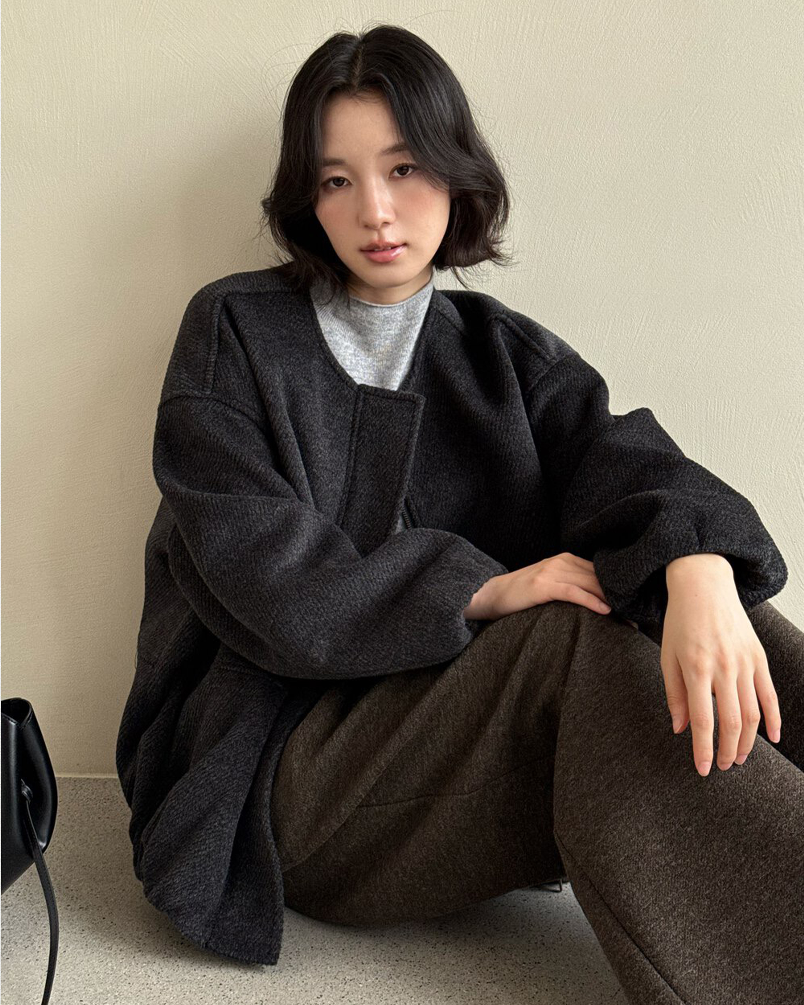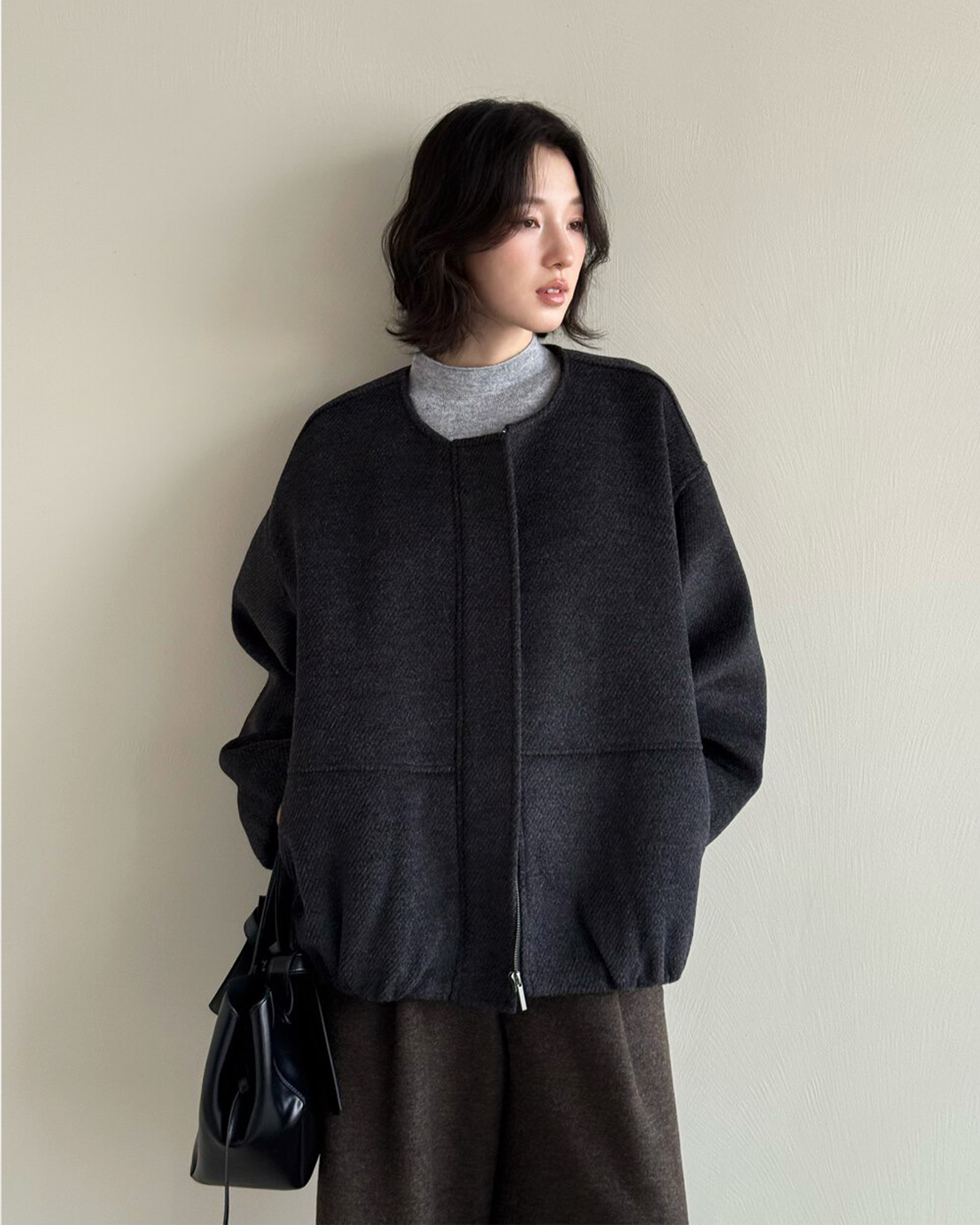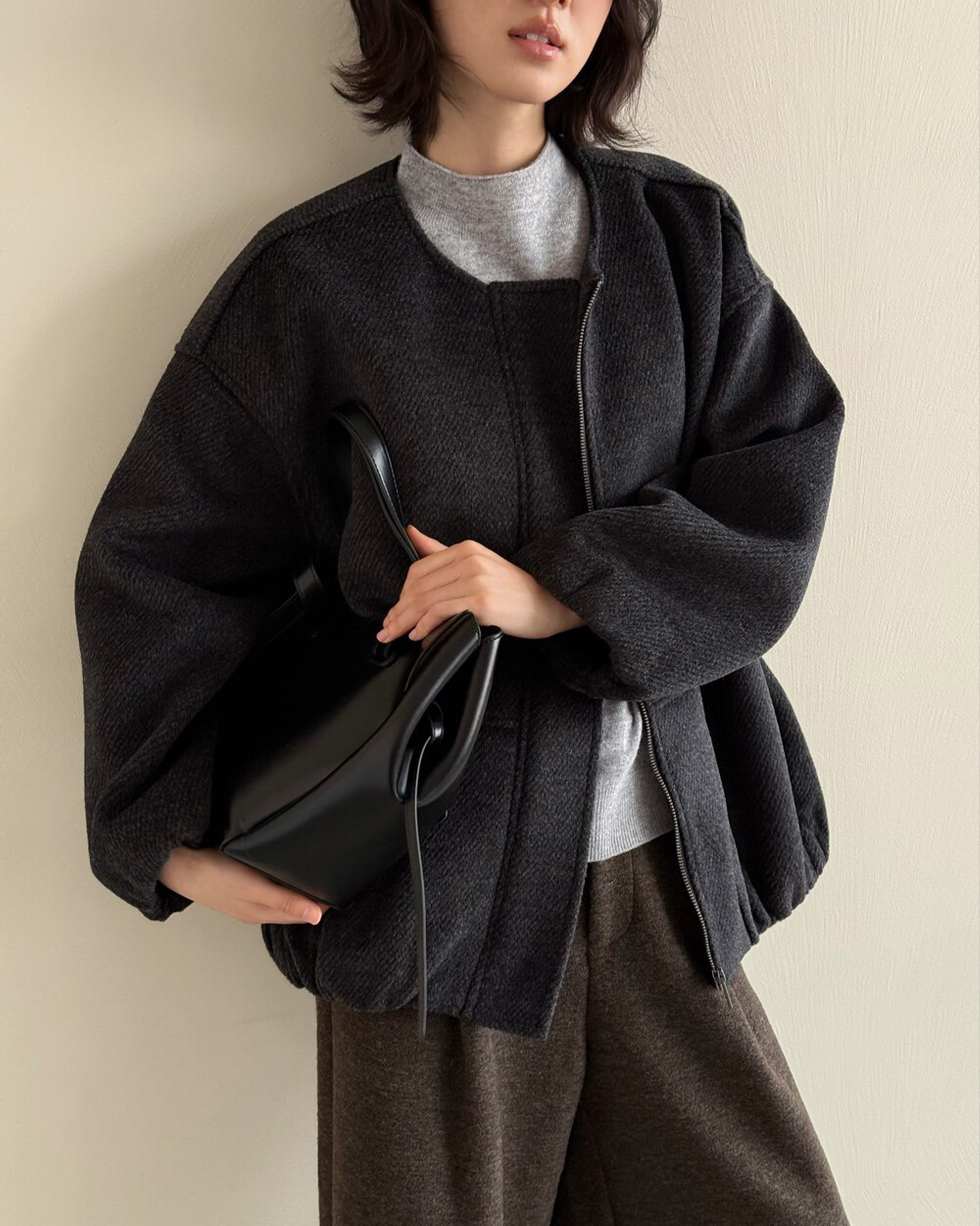 羊毛呢絨剪裁外套-深灰