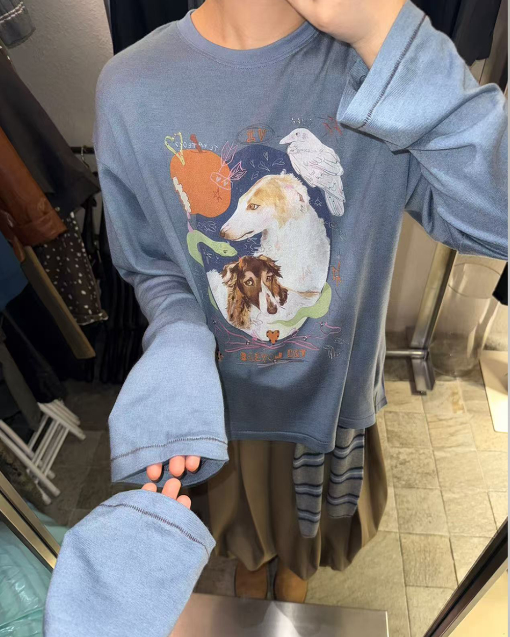 復古狗狗印花tee-藍