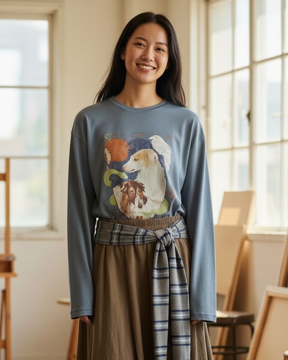 witharch法式前後穿扣衫-藍