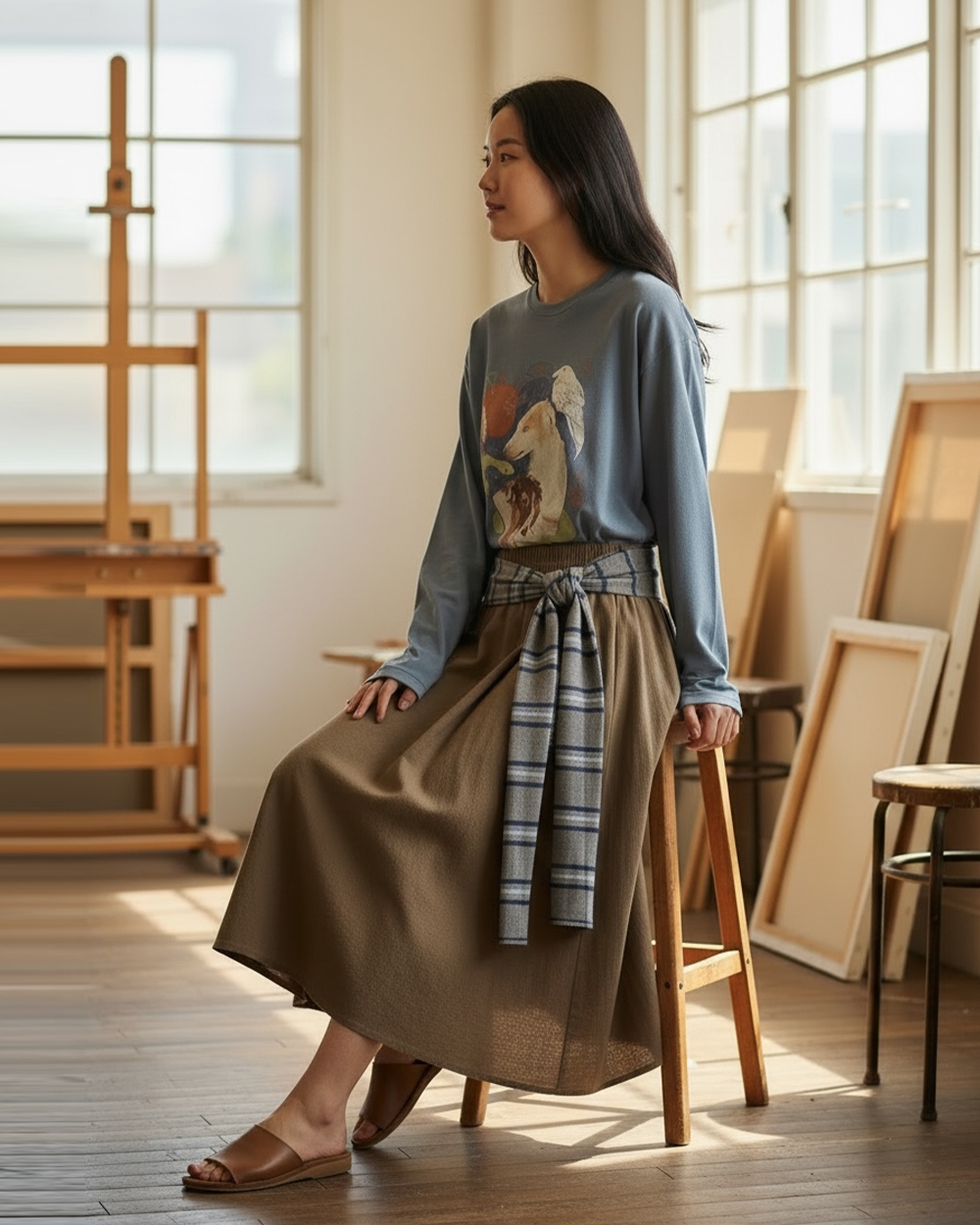 時髦豹紋鬆緊裙