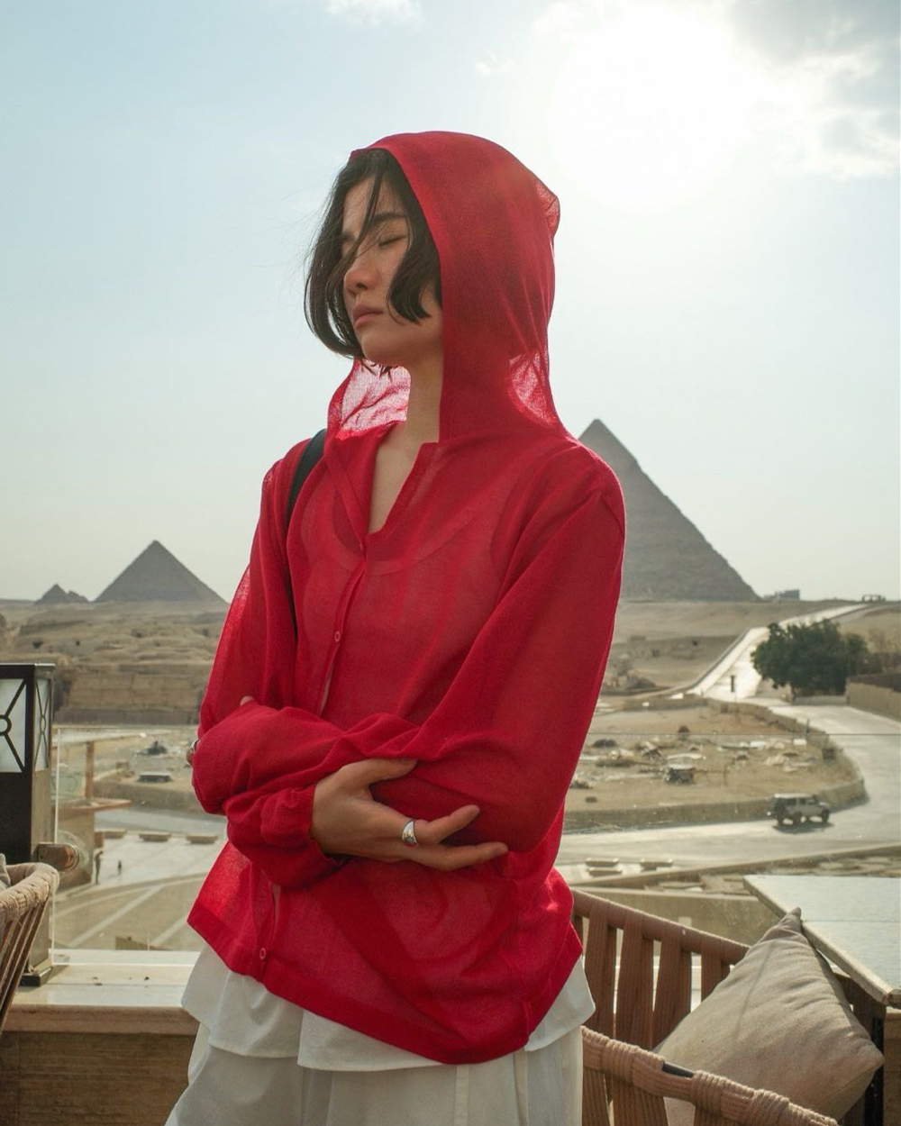 細緻連帽防曬衣-紅