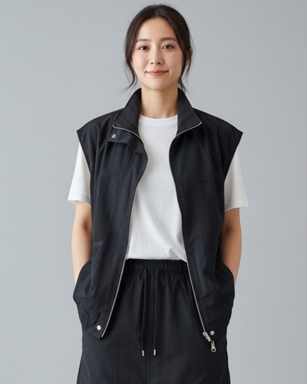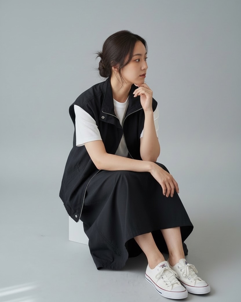打造率性都會風!100%尼龍面料輕盈實穿,挺括有型。全拉鍊可拉至立領最高,防風俐落,更能修飾頸部線條。經典黑超百搭,內搭衛衣或襯衫皆可,輕鬆穿出都會女性的層次質感與實穿品味!