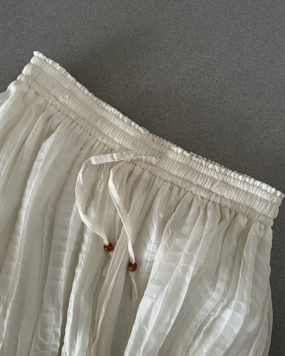 全鬆緊腰頭舒適不勒肉,搭配帶有質樸木球的抽繩,點綴出高質感的細節!貼心的內裡設計,讓妳單穿也滿滿安全感。