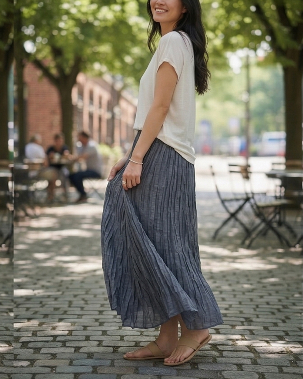 高級又顯白的灰藍色知性實穿,隨意搭件簡單的 T 恤,就能輕鬆穿出專屬妳的優雅浪漫!