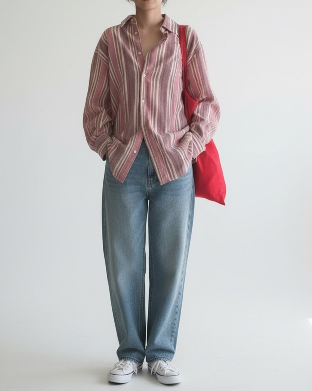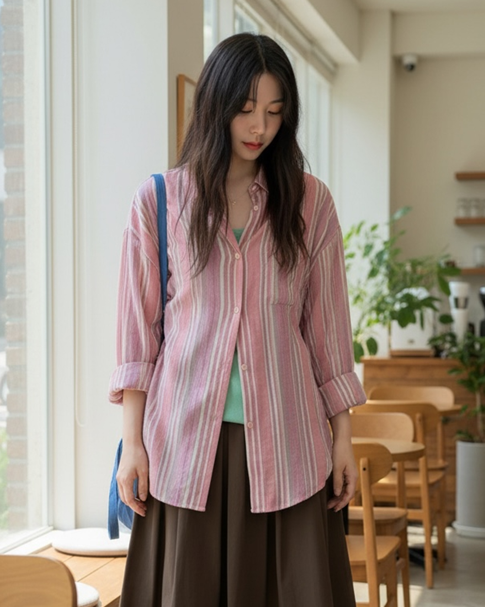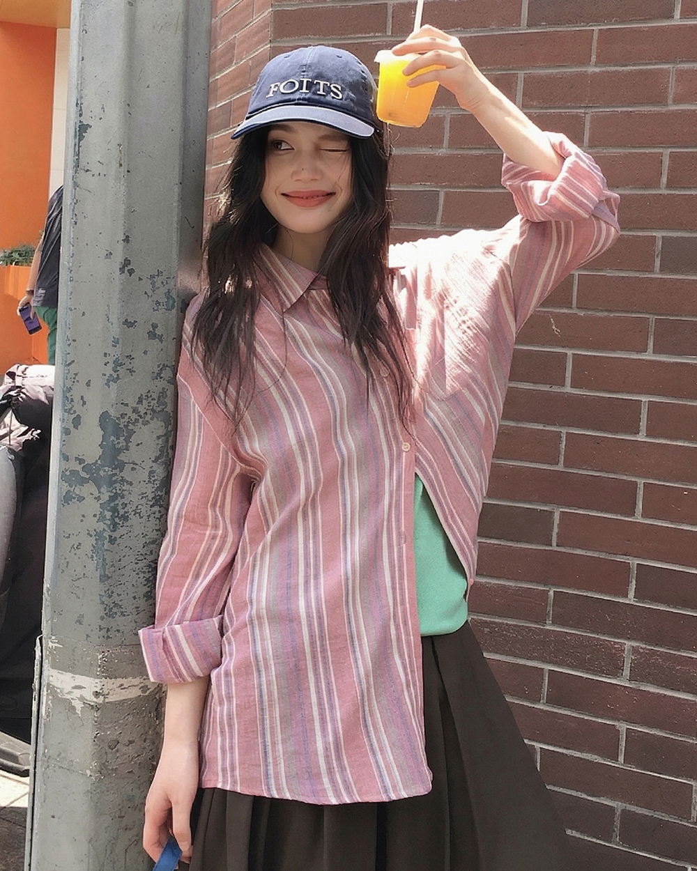 獨特暈染粉結合經典直條紋,視覺柔和不單調,輕鬆穿出知性的層次品味。