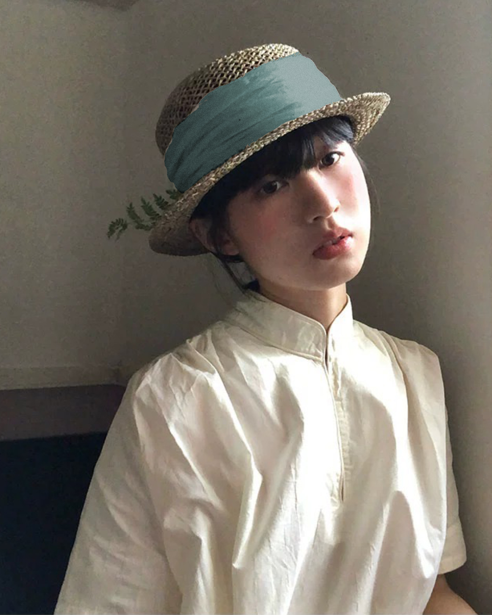 •經典平頂帽型搭配莫蘭迪綠飾帶,修飾臉型同時點亮整體穿搭視覺