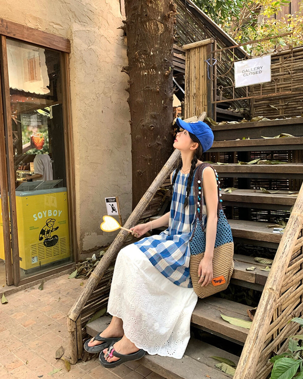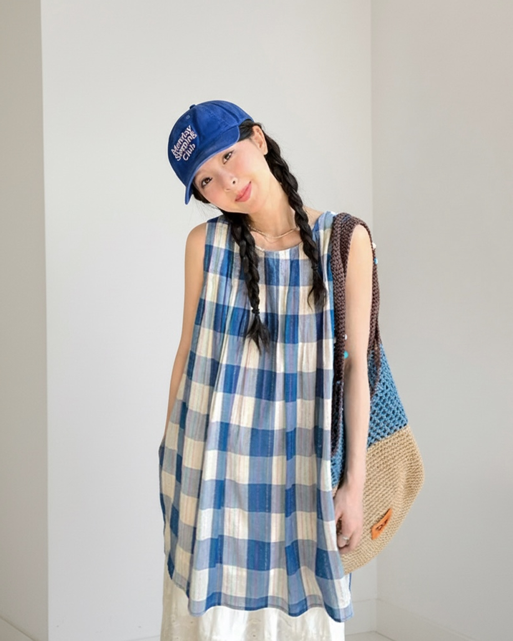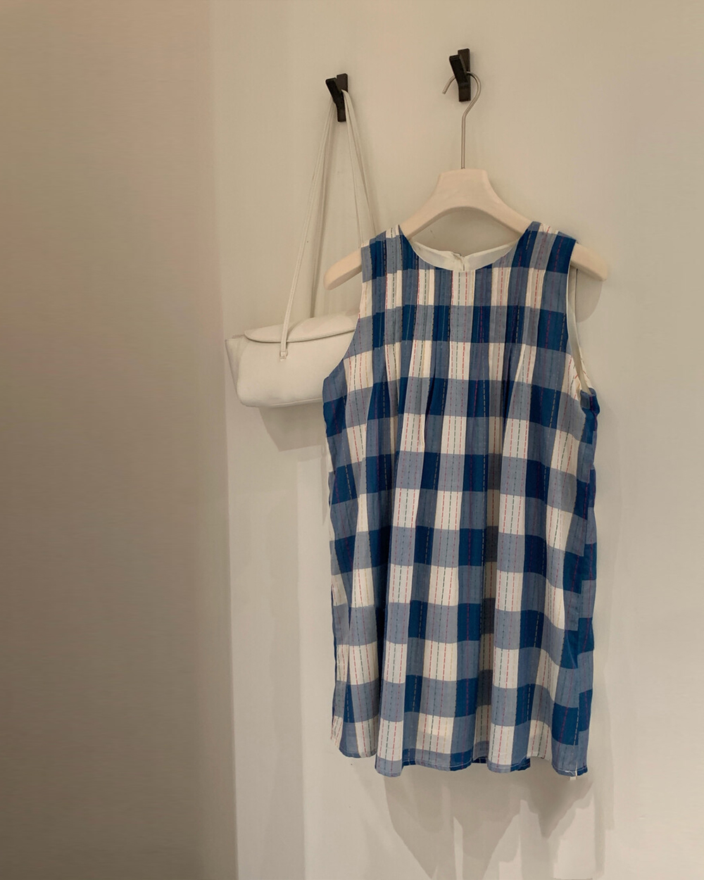 •獨特的「藍白大格紋 + 彩色細條紋」交織設計,營造豐富的視覺層次與活力感