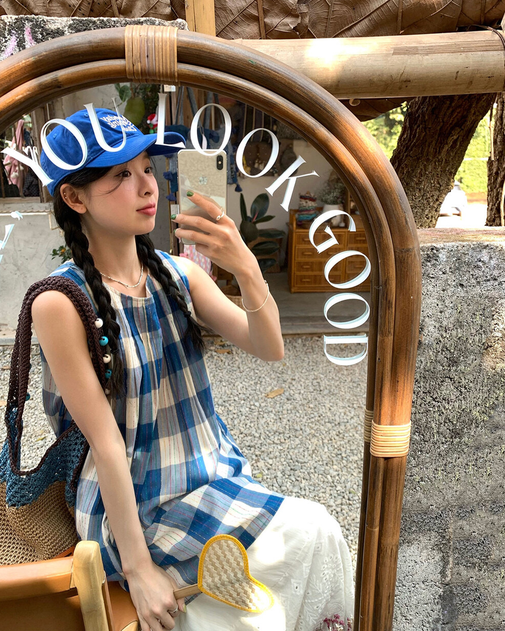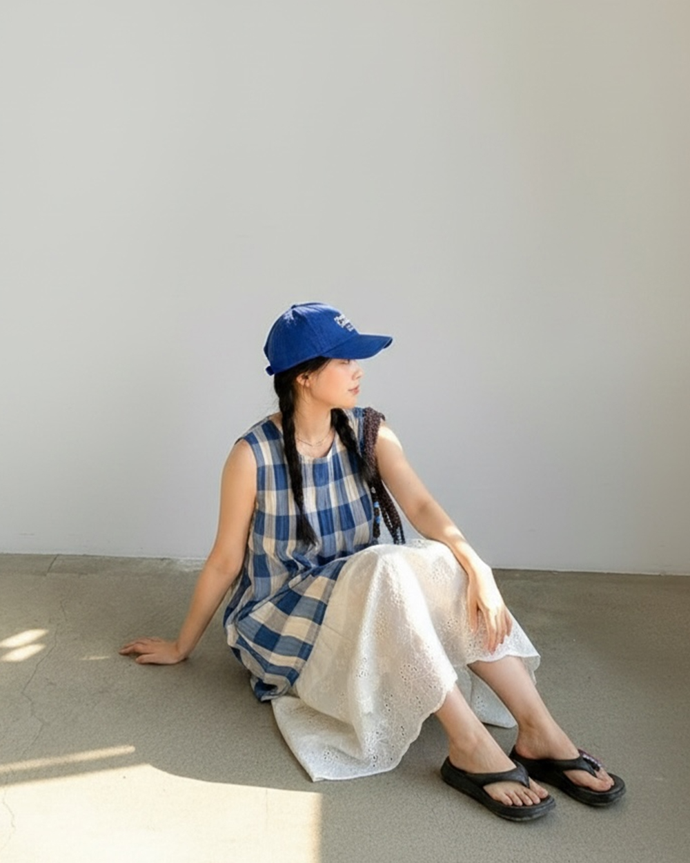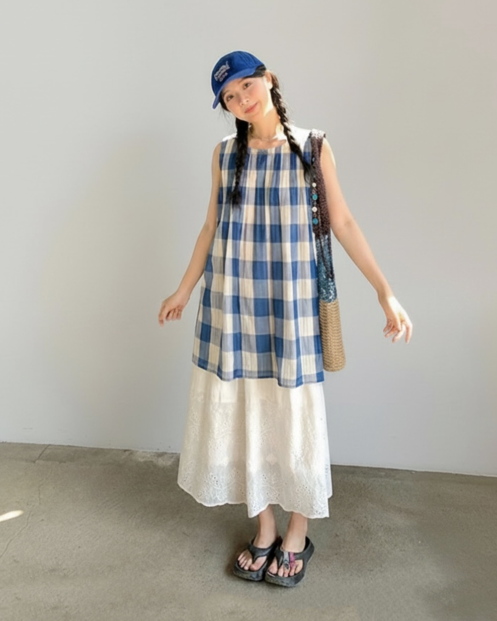 •獨特的「藍白大格紋 + 彩色細條紋」交織設計,營造豐富的視覺層次與活力感